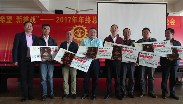 為了增強(qiáng)公司的凝聚力,表彰先進(jìn),樹立楷模,傳遞正能量,公司決定評選和表彰2017年度優(yōu)秀工廠、特殊貢獻(xiàn)先進(jìn)個人、優(yōu)秀員工和技術(shù)標(biāo)兵。獲獎的工廠廠長分別向與會者分享了成功經(jīng)驗(yàn)。