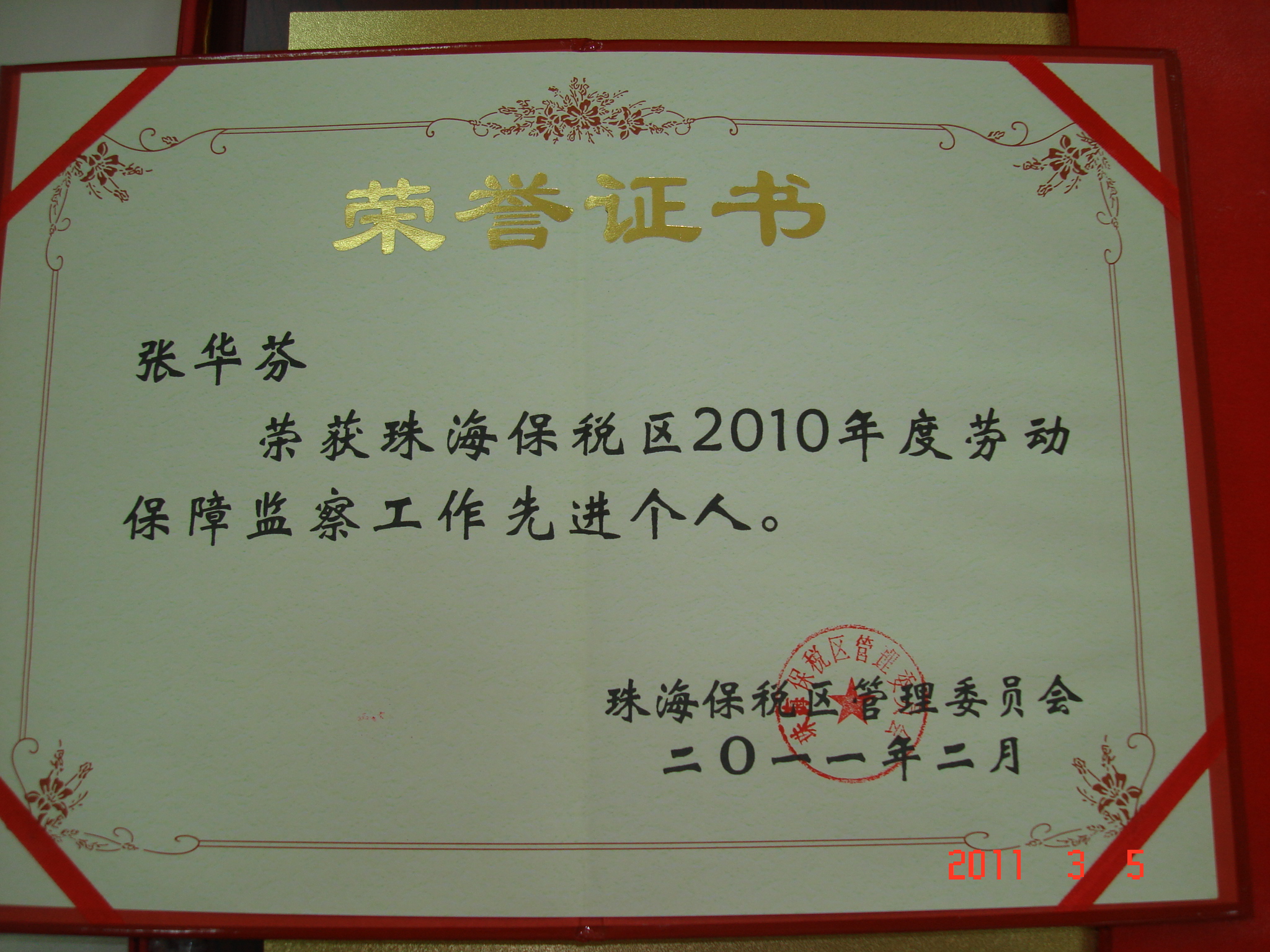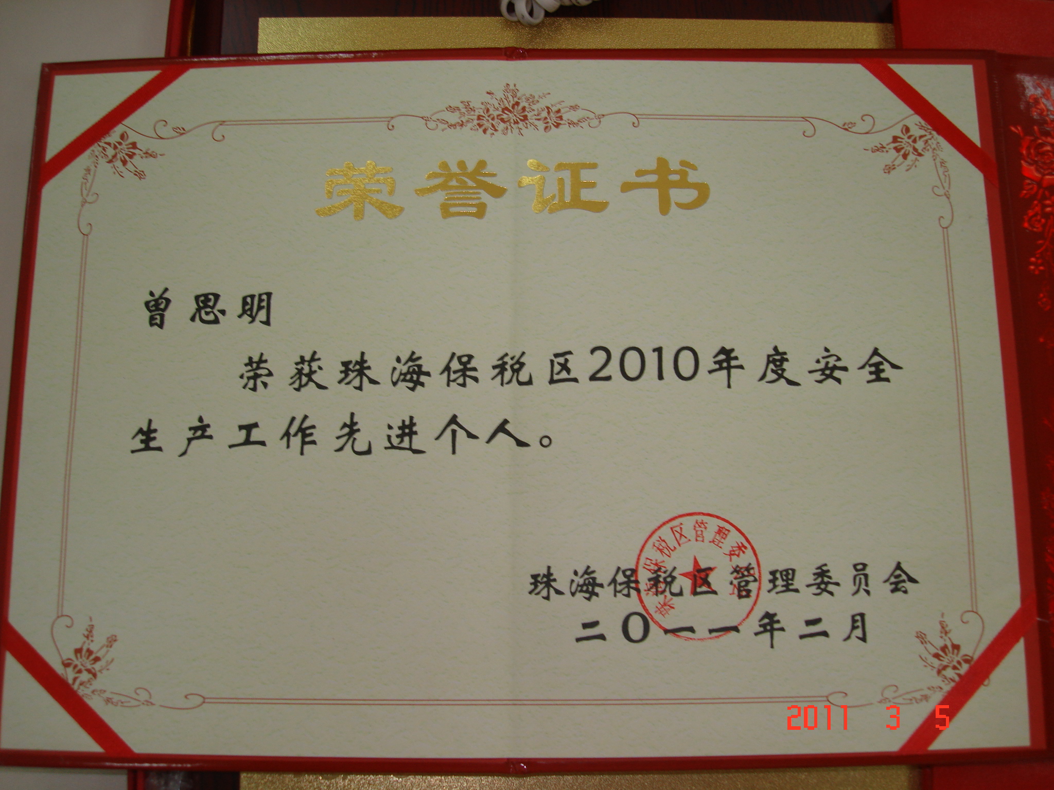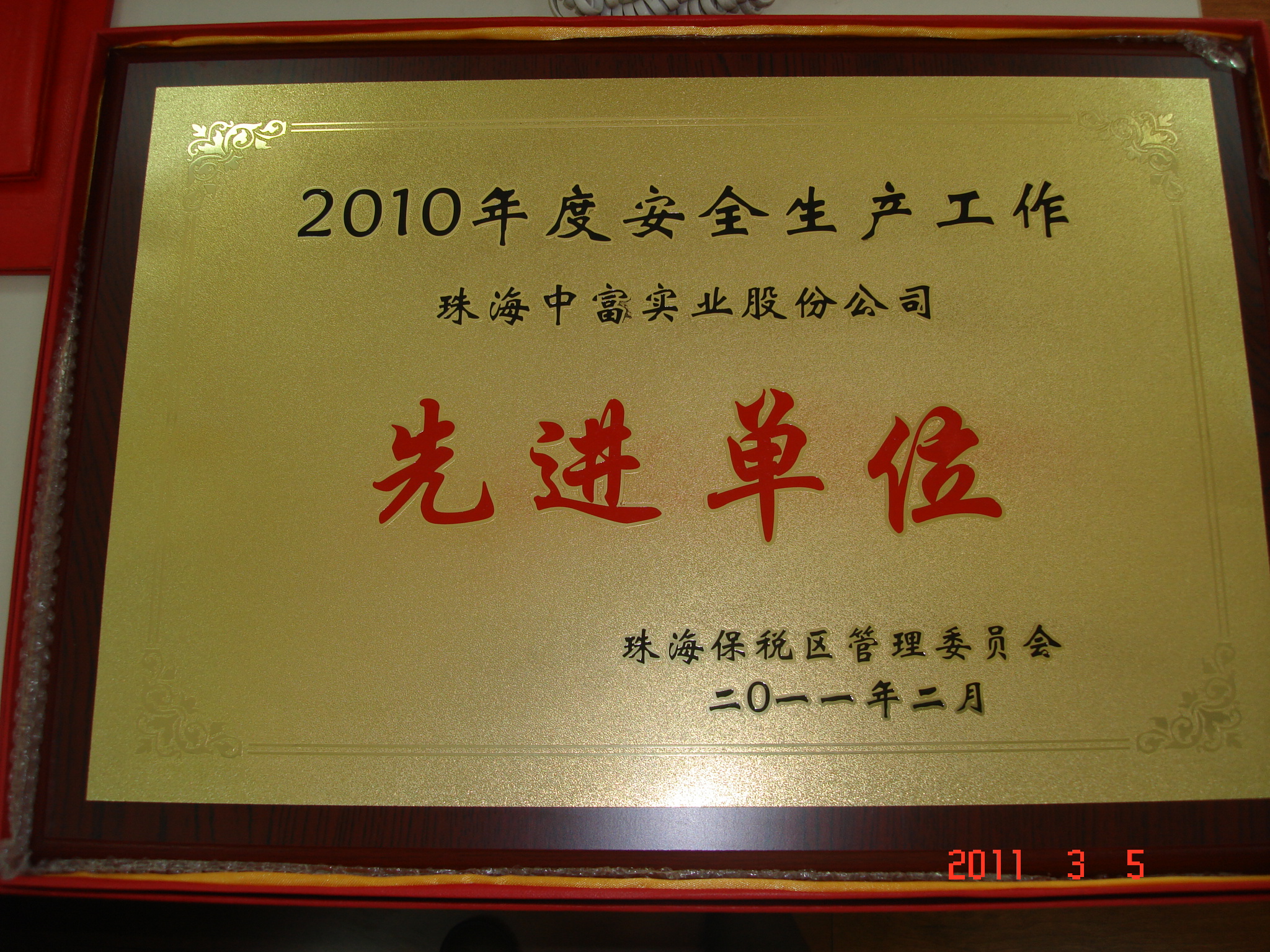 2011年剛邁入新的起點,珠海中富喜訊不斷傳來,先后被評為“2010年度經(jīng)濟工作先進單位”和“2010年度安全生產(chǎn)工作先進單位”。支持中心人事部的曾思明和張華芬同志也分別榮獲“珠海保稅區(qū)2010年度安全生產(chǎn)工作先進個人”和“珠海保稅區(qū)2010年度勞動保障監(jiān)察工作先進個人”。