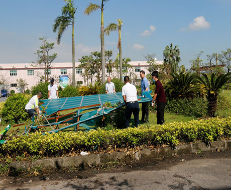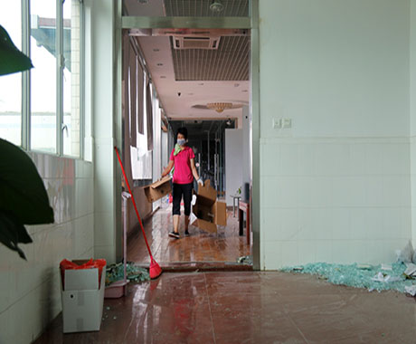 24日一早,劉錦鐘董事長、張海濱總經(jīng)理現(xiàn)場進(jìn)行全方位巡查,根據(jù)公司受災(zāi)情況,提出調(diào)動(dòng)資源優(yōu)先修復(fù)辦公區(qū)域在臺(tái)風(fēng)中破損的門窗、天花,以便第一時(shí)間恢復(fù)公司正常辦公生產(chǎn)環(huán)境。另一方面,配合保險(xiǎn)公司人員清點(diǎn)公司受損資產(chǎn)以做好索賠工作。在公司領(lǐng)導(dǎo)的指導(dǎo)下,總經(jīng)辦及后勤工作人員從24日開始,緊張、高效而有序的開展各項(xiàng)災(zāi)后修復(fù),及應(yīng)對27日“帕卡”臺(tái)風(fēng)的準(zhǔn)備工作。
