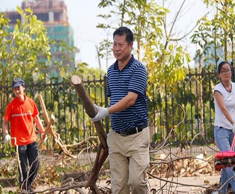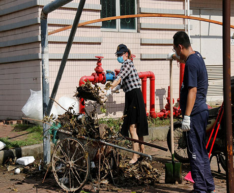 因2次臺(tái)風(fēng)連續(xù)而猛烈的破壞,園區(qū)內(nèi)隨處可見倒臥的樹木及斷枝、被吹落的屋頂鐵皮、保溫棉垃圾。為盡快恢復(fù)園區(qū)的環(huán)境,29日在中共中富總支部的倡議下,由黨員、志愿者組成的搶險(xiǎn)小分隊(duì),頂著毒辣的太陽及高溫天氣,大家不怕臟、不怕累、手持砍刀將倒下的大樹鋸斷搬走,用掃把、鐵鏟將園區(qū)內(nèi)吹倒的樹桿、鐵皮、玻璃等垃圾雜物一 一清理干凈。在清理現(xiàn)場,公司領(lǐng)導(dǎo)張海濱總經(jīng)理親臨現(xiàn)場參加并指導(dǎo)。在熱火朝天的現(xiàn)場,不論是辦公室人員還是車間人員,不管是男同胞還是女同胞,均不分彼此,全力而為,隔著屏幕都能感覺到大家滿滿的正能量。無情的臺(tái)風(fēng)雖然破壞了美麗的家園,卻也讓我們再次看到了一個(gè)個(gè)愿意奉獻(xiàn)、不怕辛苦的中富人。